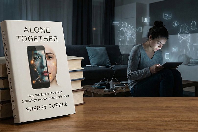 في الجانب الآخر، تتناول توركل الحياة المتصلة شبكياً (Networked Life)، حيث نعيش حالة من “الوحدة معاً” (Alone Together). نحن متصلون باستمرار عبر الأجهزة المحمولة، لكننا قد نكون غائبين ذهنياً عن الأشخاص الذين يشاركوننا المكان الفعلي. تآكلت الحدود بين العمل والترفيه، وبين الحميمية والعزلة. وتلفت إلى أن هذا الاتصال الدائم يحرمنا من فوائد العزلة الحقيقية، التي هي ضرورية للتفكير وتطوير الذات. أصبحنا نلجأ إلى الشاشات لتجنب لحظات الوحدة، مما يجعلنا غير قادرين على تحملها، وبالتالي نصبح معتمدين كلياً على الآخرين لتأكيد وجودنا، ولكن بطريقة سطحية.