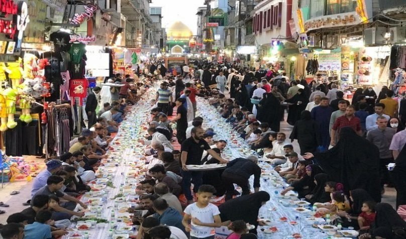 لتعزيز صور التكافل الاجتماعي والتلاحم خلال شهر رمضان المبارك تشهد محافظة النجف الأشرف، إقامة أطول مائدة رمضانية لإفطار آلاف الصائمين يومياً.
