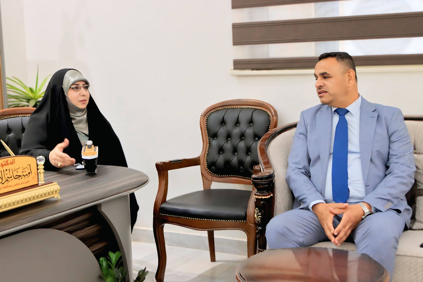 استقبلت أمين مجلس محافظة كربلاء الدكتورة آمنة الأسدي اليوم الاثنين 37 / 4 / 2026 في مقر المجلس الأستاذ محمد خضير المسعودي عضو المجلس ورئيس لجنة التربية في لقاء خُصص للوقوف على أبرز التحديات التي تواجه القطاع التربوي ومناقشة مستجداته.
